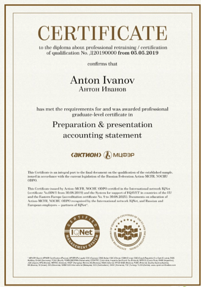 Программы обучения соответствуют требованиям профстандарта “Бухгалтер”, а также европейскому образовательному стандарту EQAVET
